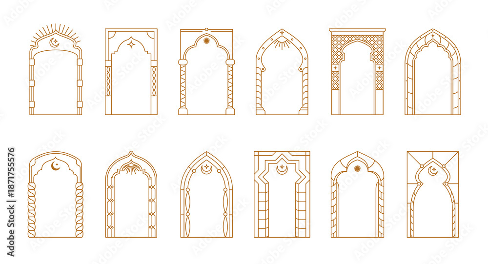Ludzie - Arabian Ramadan boho arch frames with vector minimal line pattern. Muslim mosque window and door... #1871755576