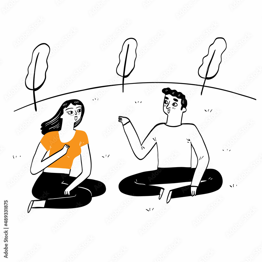 Relaks - Couple are relax and talking in the park. #489331875
