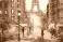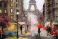 • oil painting on canvas, street view of Paris. Artwork. eiffel tower . people under a red umbrella. Tree. France