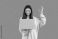• Young woman with laptop showing OK on violet background