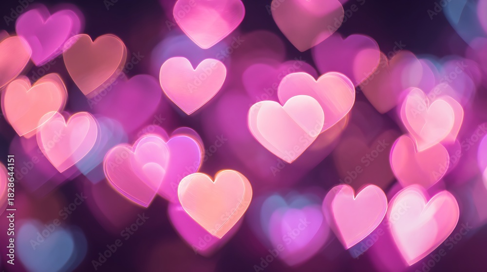 • Vibrant Magenta Heart Shapes Bokeh Texture Abstract Background