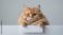 • Humorous white cat holding a sign on a plain background for pet shop banner